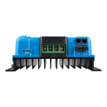 Încărcătorul MPPT VE.Can SmartSolar se conectează la un panou fotovoltaic de 150 sau 250 V cu tensiune în circuit deschis și va detecta și încărca setul dvs. de baterii de 12, 24, sau 48 cu un curent de la 70 la 100 A, în funcție de model.